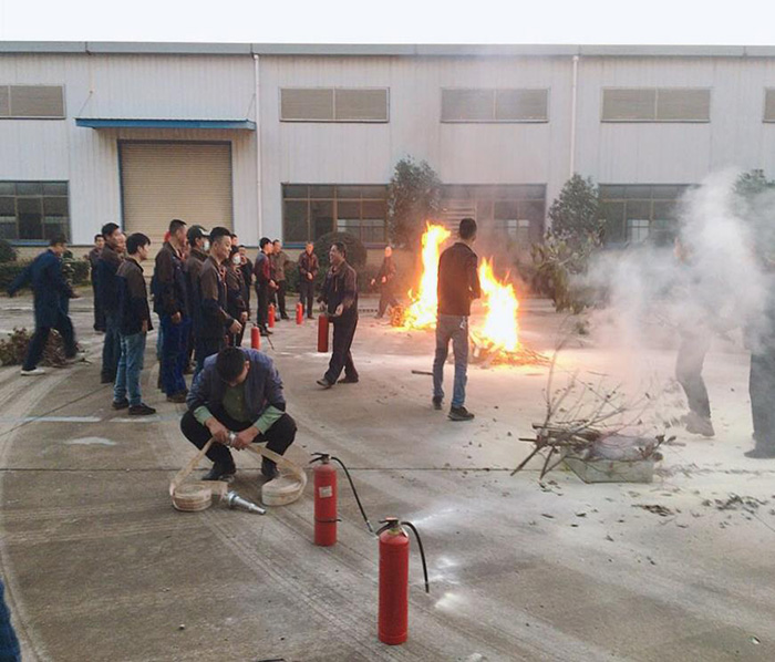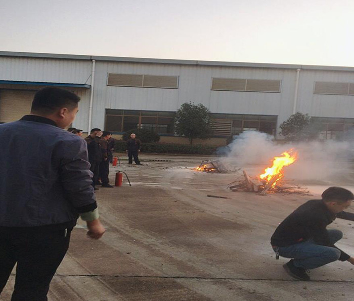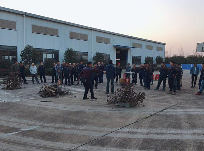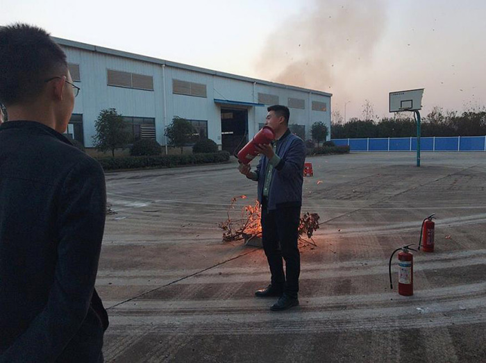 2、聽完講解、消防警官帶領(lǐng)我們?nèi)w員工來(lái)到現(xiàn)場(chǎng)做一個(gè)消防操作、進(jìn)行一個(gè)消防演習(xí)